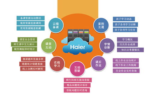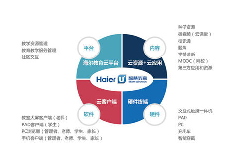 海尔U+智慧教育以“云+端”为核心,是一个包括了从信息化教育所需要的终端设备、“课前、课中、课后”教育互动解决方案以及“互联网+”教育资源整合平台为一体的创新教育模式。
