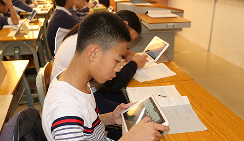 智慧教育课堂上,学生通过平板电脑完成各项课堂学习。