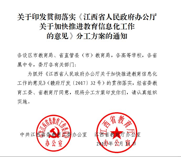 关于印发贯彻落实《江西省人民政府办公厅关于加快推进教育信息化工作的意见》分工方案的通知